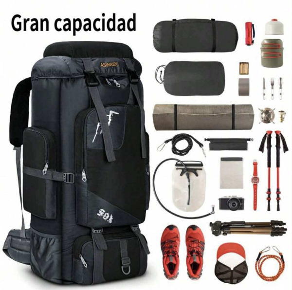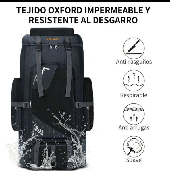 Características: 5 compartimentos con cierre de diferentes tamaños, 2 de malla, Correas extensibles y acolchonadas, resistente al agua .